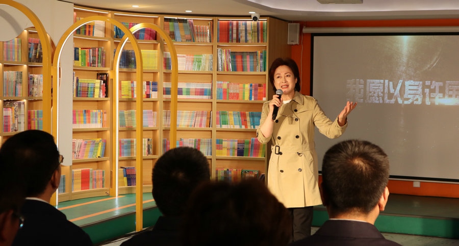 活動(dòng)現(xiàn)場(chǎng),大型交響詩(shī)畫《我愿以身許國(guó)》劇組的各位朗誦家們,深情演繹了大型交響詩(shī)畫《我愿以身許國(guó)》片段,并代表內(nèi)蒙古出版集團(tuán)為呼和浩特市賽罕區(qū)四千米社區(qū)捐贈(zèng)圖書(shū)。