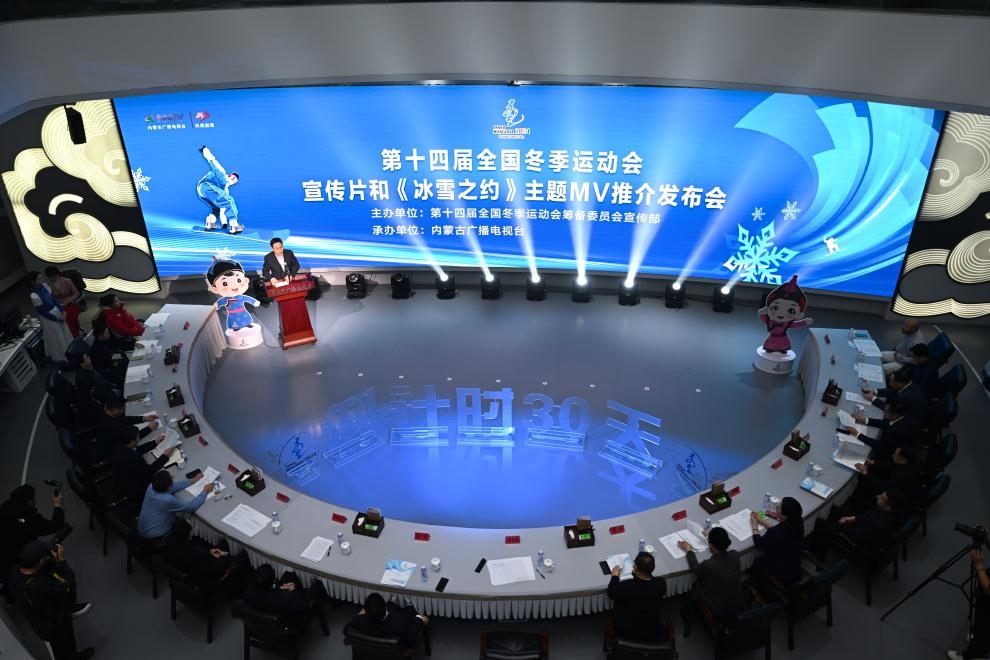??這是1月17日拍攝的第十四屆全國冬季運(yùn)動(dòng)會(huì)宣傳片和《冰雪之約》主題MV推介發(fā)布會(huì)現(xiàn)場(chǎng)。新華社記者 貝赫 攝