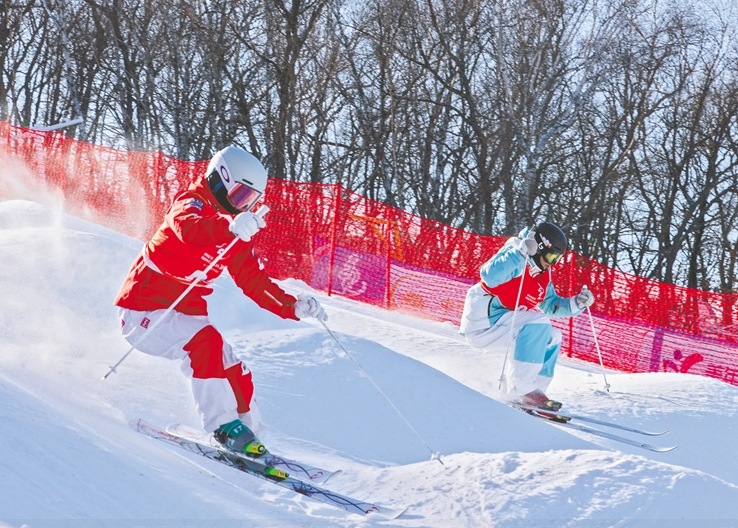 2月19日,在扎蘭屯金龍山滑雪場進(jìn)行的“十四冬”自由式滑雪雪上技巧比賽圓滿收官,當(dāng)天決出公開組女子、男子雙人雪上技巧比賽金牌。