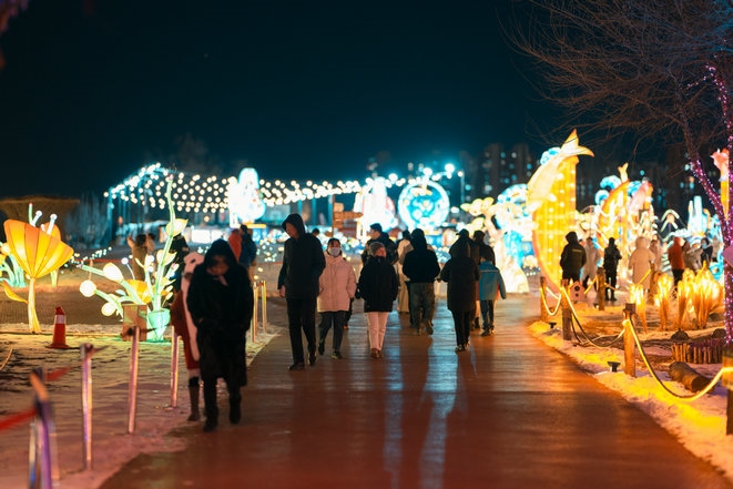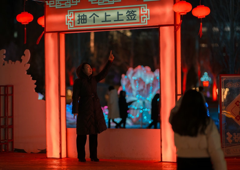 呼和浩特市民曹女士說:“今年49歲,正好本命年,已經(jīng)拍了很多照片和視頻了,這些龍的造型很喜人,更賞心悅目,家就住附近,沒事就來逛一逛,心情都會變得更好了,還能和孩子一起學(xué)習(xí)生僻字,了解中國傳統(tǒng)文化,很期待正月十五的燈謎,到時(shí)候還會來,和孩子一起猜燈謎、長知識?!?/p>
