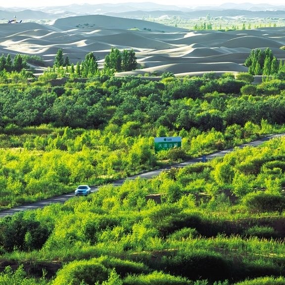 在與沙的博弈中,內(nèi)蒙古探索出許多行之有效的模式和路子,為全國乃至全球荒漠化防治提供了“中國方案”、貢獻(xiàn)了“中國智慧”。庫布其沙漠治理模式被巴黎氣候大會標(biāo)舉為“中國樣本”,樹立了生態(tài)治理的國際典范。如今,庫布其治沙模式、技術(shù)和成果已經(jīng)走向世界,為全球3600萬平方公里的荒漠化土地治理和無數(shù)受荒漠化威脅的人們貢獻(xiàn)著“方案”與“智慧”。阿拉善盟摸索出一套適合極度干旱地區(qū)飛播造林的技術(shù)模式,打破了年降水量200毫米以下地區(qū)屬于飛播造林“禁區(qū)”的“魔咒”,為其他同等氣候條件下的沙漠治理提供了示范。向沙漠要效益,沙漠變資源,沙海變“藍(lán)?!保瑑?nèi)蒙古保護生態(tài)與改善民生步入良性循環(huán)……