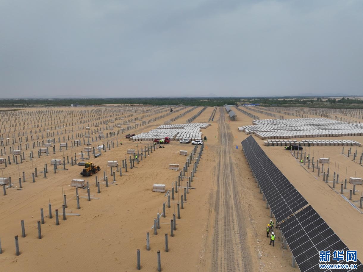 ??6月13日拍攝的翁牛特旗蒙地阿什罕光伏基地建設(shè)現(xiàn)場(chǎng)。新華網(wǎng)發(fā)(叢金龍 攝)