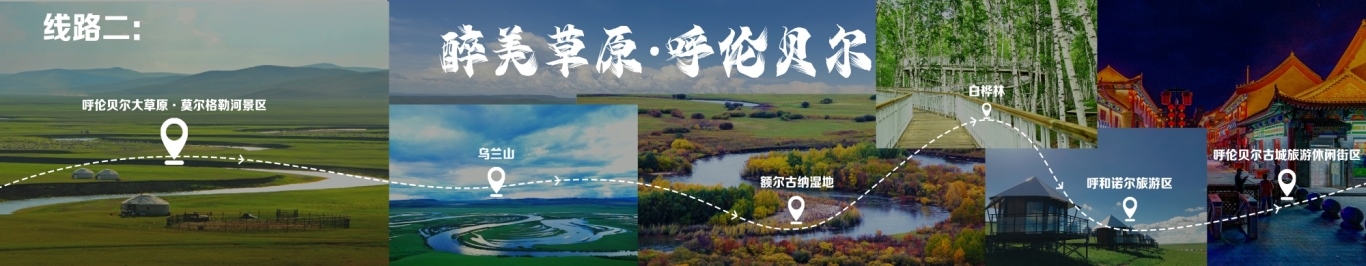 線路行程由海拉爾出發(fā),至呼倫貝爾大草原·莫爾格勒河景區(qū),至烏蘭山,至額爾古納濕地,再至白樺林,再至呼和諾爾旅游區(qū),終點為呼倫貝爾古城旅游休閑街區(qū)。