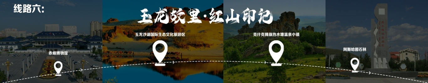 線路行程由赤峰出發(fā),至赤峰博物館,至玉龍沙湖國際生態(tài)文化旅游區(qū),再至克什克騰旗熱水塘溫泉小鎮(zhèn),終點為阿斯哈圖石林。