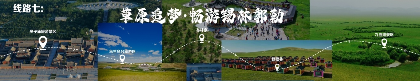 線路行程由錫林浩特出發(fā),至貝子廟旅游景區(qū),至烏蘭烏臺旅游區(qū),至布林泉,再至野狼谷,終點為九曲灣景區(qū)。