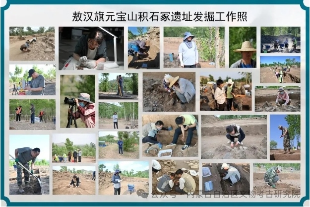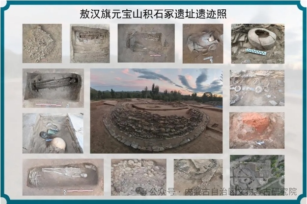 2023年11月,位于赤峰市敖漢旗下洼鎮(zhèn)元寶山積石冢被盜,當(dāng)?shù)匚奈锕芾聿块T上報(bào)后,2024年初內(nèi)蒙古自治區(qū)文物考古研究院經(jīng)自治區(qū)文物局批準(zhǔn),以搶救性考古發(fā)掘向國家文物局申請(qǐng)并得以批準(zhǔn)。4月底,組隊(duì)對(duì)該地點(diǎn)及周邊開展調(diào)查并進(jìn)行了勘探。5月正式啟動(dòng)發(fā)掘,截止目前已明確該地點(diǎn)為一處集墓葬建筑與祭祀建筑一體的紅山文化遺存。也是目前所知內(nèi)蒙古自治區(qū)唯一的一處南方北圓、南壇北冢的紅山文化晚期建筑遺存。