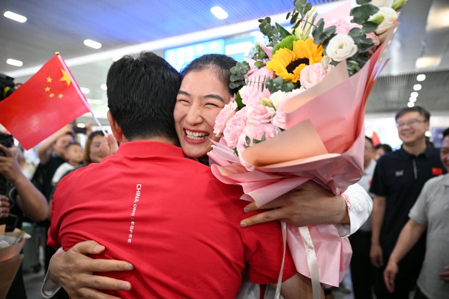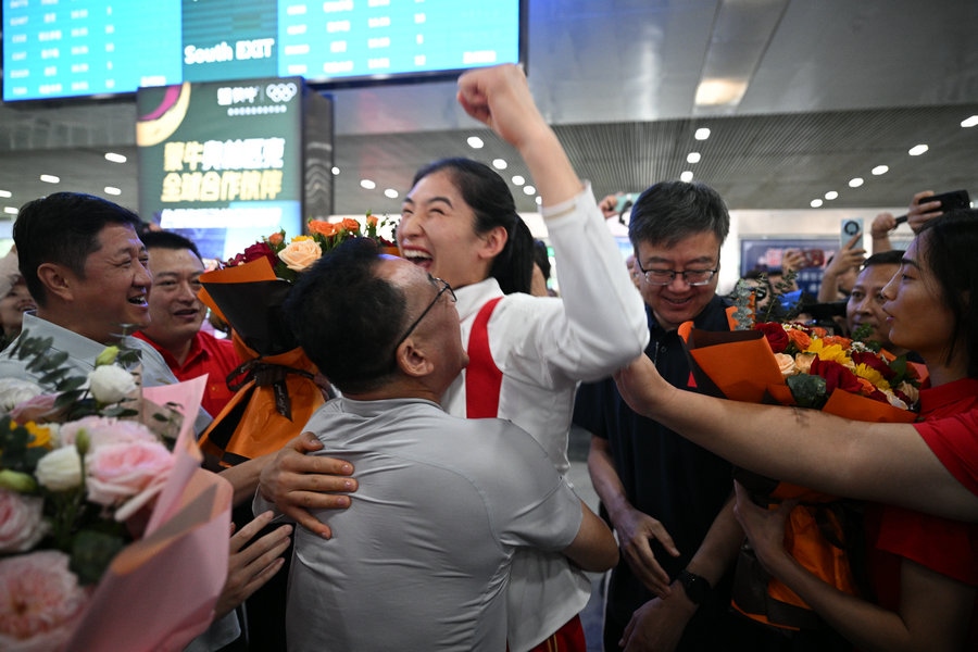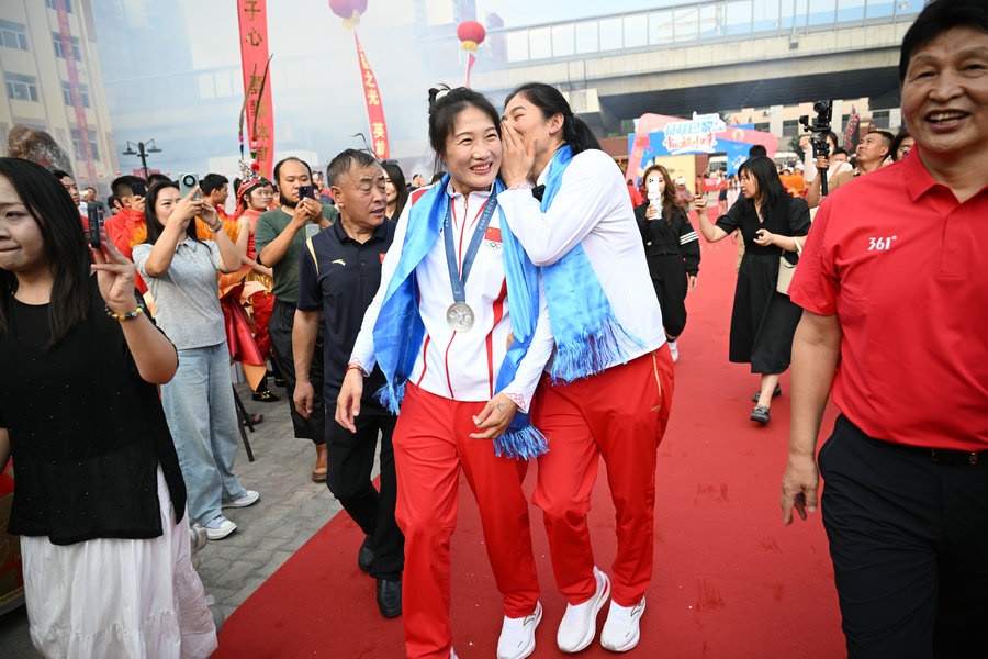 8月15日,征戰(zhàn)巴黎奧運(yùn)會(huì)的內(nèi)蒙古健兒李倩、楊柳乘坐高鐵,從北京回到呼和浩特。李倩在巴黎奧運(yùn)會(huì)斬獲女子75公斤級(jí)金牌,楊柳摘得女子66公斤級(jí)銀牌。奧運(yùn)健兒載譽(yù)歸來,身在家鄉(xiāng)的親朋好友、隊(duì)友教練為她們準(zhǔn)備了盛大的歡迎儀式。(記者 李艷紅 李文華 林則志 石茹意)