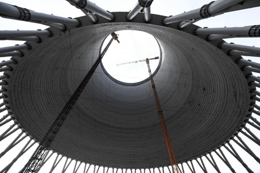 12月6日,在內(nèi)蒙古呼和浩特市土默特左旗內(nèi)蒙古能源集團金山熱電三期項目建設現(xiàn)場,工人們正有序進行著設備安裝等工作。進入該項目間冷塔內(nèi)部,抬頭仰望,仿佛一只巨大的眼睛凝視,未來該項目投產(chǎn)后可實現(xiàn)年發(fā)電量100億千瓦時,新增供熱面積5000萬平方米,將溫暖送至千家萬戶。(楊鑫 攝)