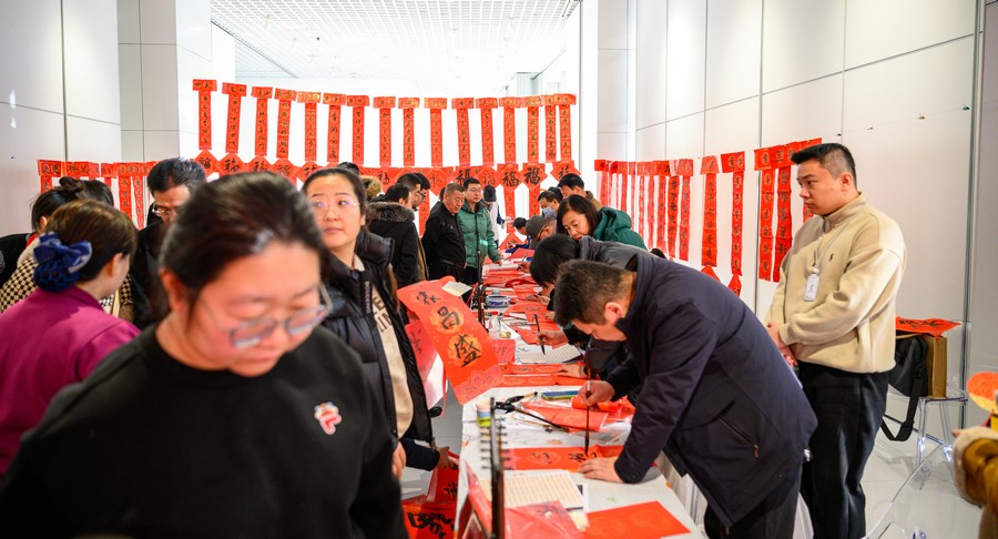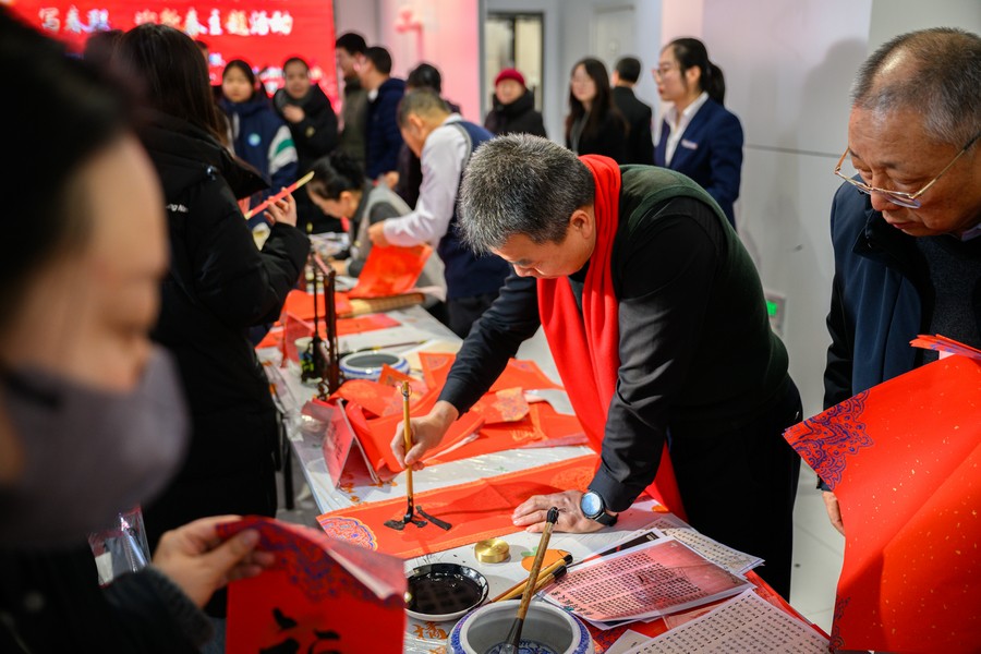 活動(dòng)吸引了眾多書法愛好者和市民朋友積極參與,大家在現(xiàn)場(chǎng)揮毫潑墨,將新春的美好祝愿融入字里行間,充滿了對(duì)新年的期待與祝福。