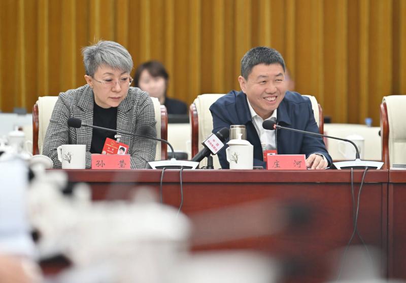 3月7日,全國(guó)人大代表莊河(右)說(shuō),中國(guó)鐵路呼和浩特局集團(tuán)有限公司將積極落實(shí)政府工作報(bào)告的相關(guān)要求,加強(qiáng)鐵路基礎(chǔ)設(shè)施建設(shè),優(yōu)化客運(yùn)產(chǎn)品,實(shí)現(xiàn)多樣供給,大力發(fā)展鐵路現(xiàn)代物流,發(fā)揮好鐵路對(duì)推動(dòng)經(jīng)濟(jì)社會(huì)高質(zhì)量發(fā)展的支撐保障作用。記者 馬建兵 攝
