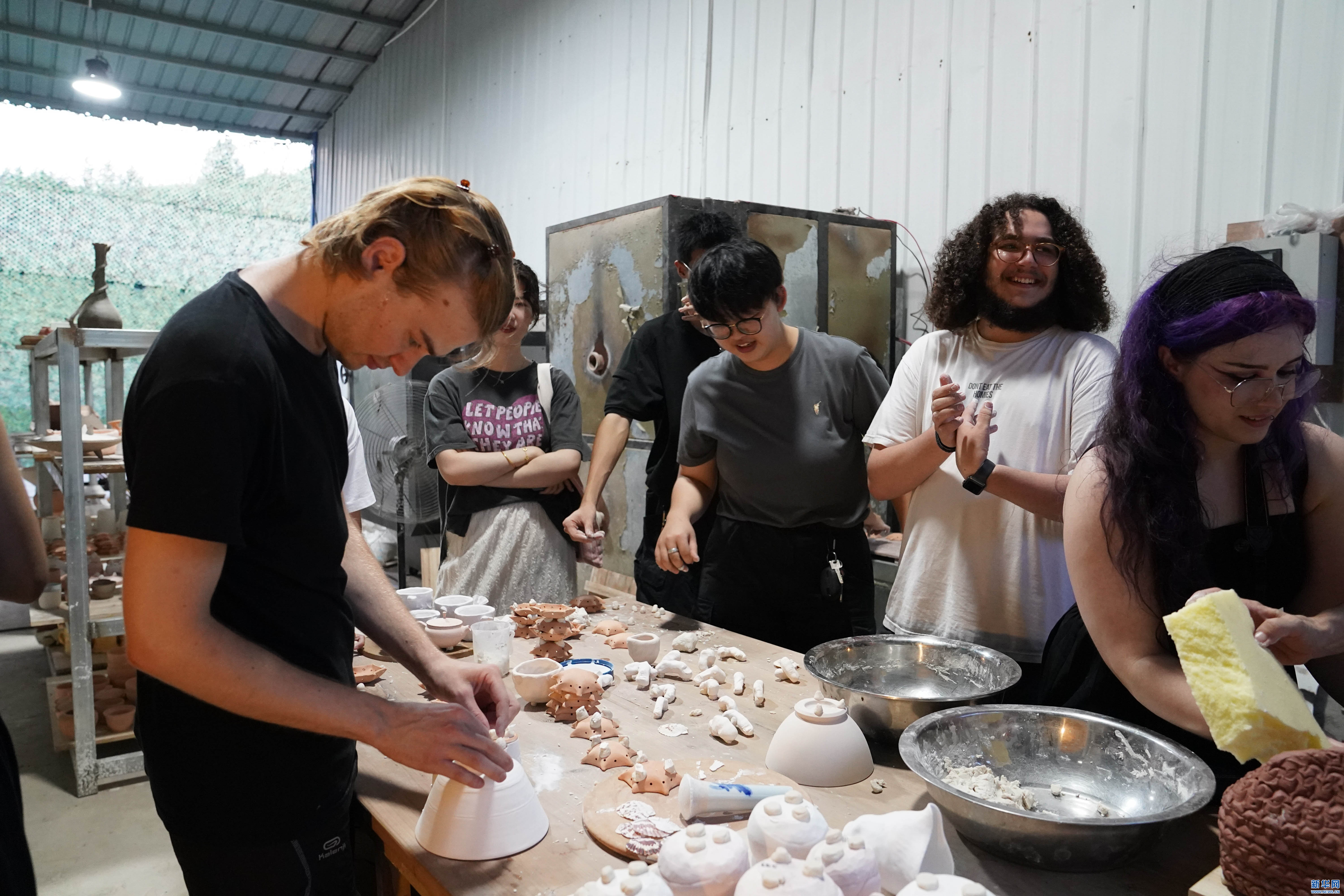 2024年7月17日,參觀者在江西景德鎮(zhèn)陶瓷大學的一處窯爐旁一起創(chuàng)作、討論。新華社記者 周密 攝