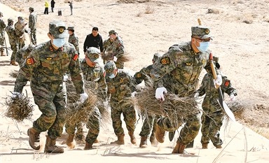 內(nèi)蒙古巴彥淖爾軍分區(qū)發(fā)動民兵參與烏蘭布和沙漠治沙攻堅戰(zhàn) 植樹造林戰(zhàn)“黃龍”