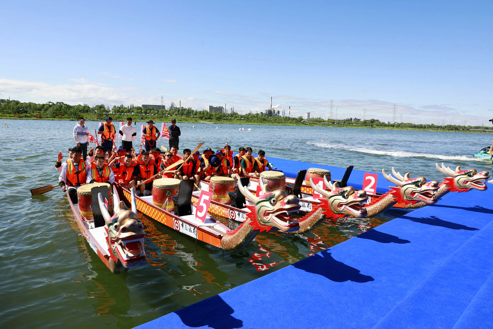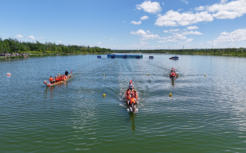 5月31日,呼和浩特大黑河賽罕區(qū)段相當(dāng)熱鬧,河面波光粼粼,岸邊人山人海,近萬市民和游客都趕來圍觀2025年首屆大黑河端午龍舟賽。這次比賽吸引了50多支隊(duì)伍600多人參賽。