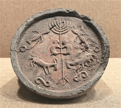 遺址展示館內(nèi),戰(zhàn)國時期樹木鳥獸紋瓦當(dāng)、漢代“富樂未央,子孫宜昌”銘文磚、北魏角抵瓦當(dāng)?shù)冉ㄖ?gòu)件,訴說著古城的千年繁華。樹木鳥獸紋瓦當(dāng)正中有一株挺拔的樹,弧形樹冠向上舒展,枝葉兩側(cè)對稱雕刻振翅飛鳥,樹干上的兩只猴子呈攀緣姿態(tài)相對而立,樹根部對飾兩只山羊,造型質(zhì)樸。內(nèi)蒙古師范大學(xué)北疆文化研究中心主任陳永志介紹:“樹冠飛鳥、猴子攀樹題材源自中原地區(qū)靈魂升天、王侯將相等文化元素,而對羊紋又具有草原游牧民族風(fēng)格。這件瓦當(dāng)生動體現(xiàn)了中原文化與北方草原文化的交融?!?/p>