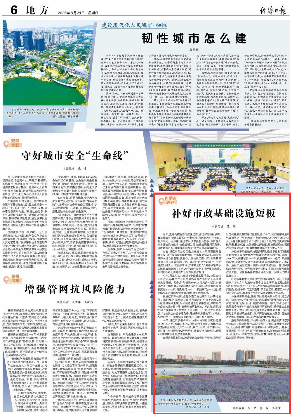 2025年8月31日,《經(jīng)濟日報》第6版刊發(fā)題為《補好市政基礎(chǔ)設(shè)施短板》的文章,報道了近年來,通遼市以城市更新為抓手,不斷提升城市基礎(chǔ)設(shè)施建設(shè),推進溫暖工程,改造老舊管網(wǎng)及危房,疏浚城市水系,治理城市內(nèi)澇,打造安全宜居幸福城市。