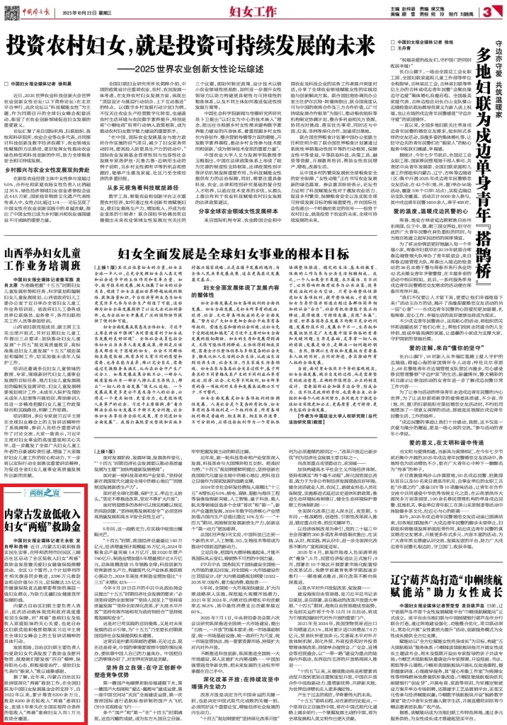 2025年10月22日,《中國婦女報》第3版刊發(fā)題為《內(nèi)蒙古發(fā)放低收入婦女“兩癌”救助金》的文章,報道了近日,內(nèi)蒙古自治區(qū)婦聯(lián)在呼和浩特市回民區(qū)三順店社區(qū)啟動全區(qū)低收入婦女“兩癌”救助金發(fā)放暨關(guān)愛婦女健康保險捐贈活動,全區(qū)12個盟市、2個計劃單列市在相關(guān)旗縣同步推進(jìn)。