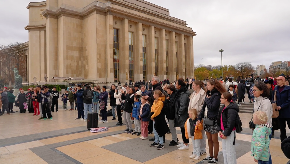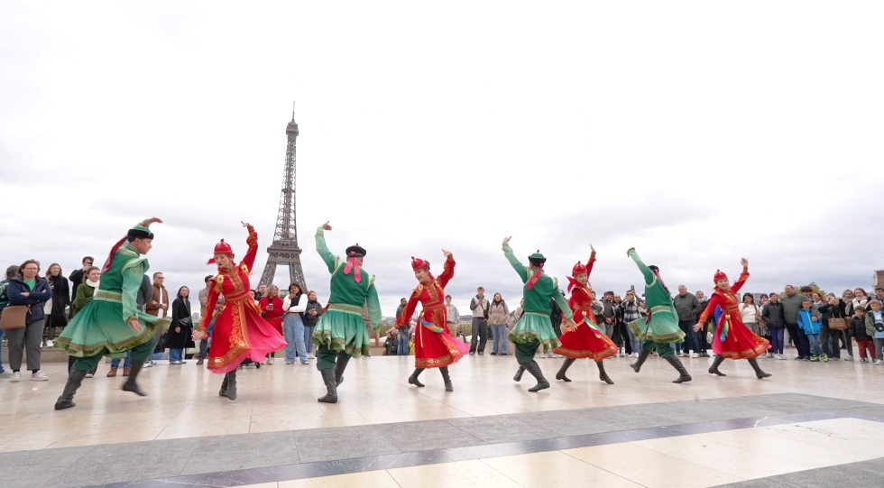 在法國(guó)巴黎市的夏約宮廣場(chǎng)、埃菲爾鐵塔、香榭麗舍大街、巴黎圣母院、凱旋門、國(guó)際大學(xué)城,比利時(shí)布魯塞爾市大廣場(chǎng)、藝術(shù)山等地,阿拉善的烏蘭牧騎演員開(kāi)啟了一場(chǎng)場(chǎng)融合蒙古族華服走秀與快閃歌舞表演,“阿拉善在哪里?”“這服裝太酷了!”“怎么有萬(wàn)馬奔騰的感覺(jué)!”“想去看一看!”“這沙漠也太壯觀了!”快閃路演吸引了法國(guó)、比利時(shí)以及來(lái)自世界各地的游客駐足觀看,喝彩不斷,沉醉其中。