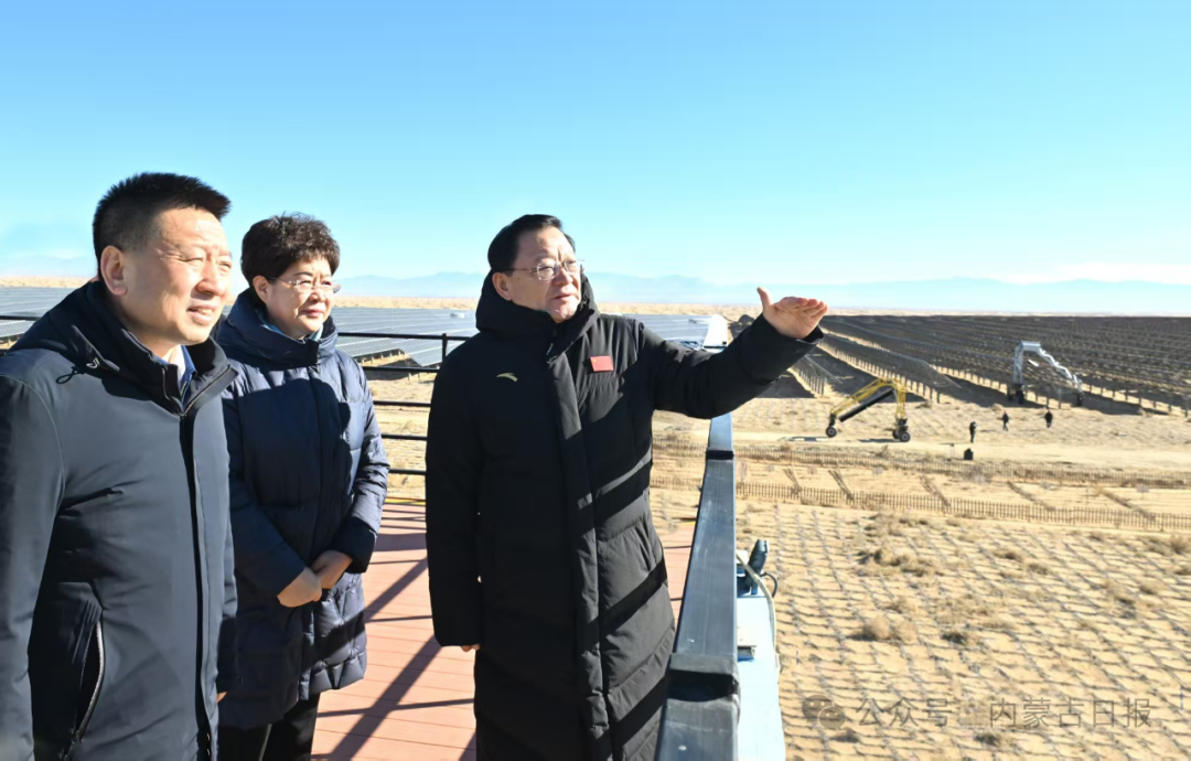 11月17日,自治區(qū)黨委書記王偉中來到騰格里沙漠東南部新能源大基地,認(rèn)真聽取項(xiàng)目規(guī)劃、建設(shè)和運(yùn)營等情況介紹。草原云·內(nèi)蒙古新聞網(wǎng)記者 馬建兵 攝