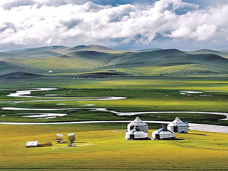 天似穹廬,籠蓋四野。夏秋季節(jié),走進敕勒川草原,綿延綠浪涌向遠方,在廣袤大地鋪展,與陰山山脈相接?!帮L吹草低見牛羊”的草原美景仿佛穿越千年而來,依舊震撼人心。