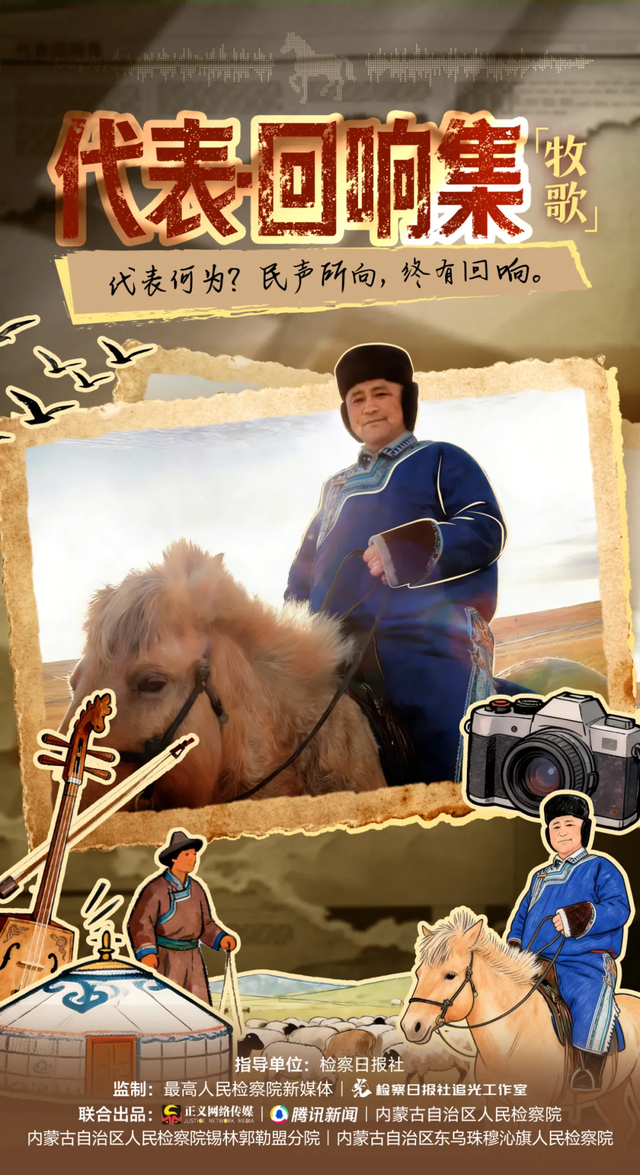 風(fēng)吹草原,帶來(lái)無(wú)邊的綠浪,也帶來(lái)牧民們的歌聲。那些牧歌訴說(shuō)著草原的期盼。代表何為?讓民聲所向,終有回響。檢察何為?助聲聲回響,落回草原,成就年年綠野蒼蒼。