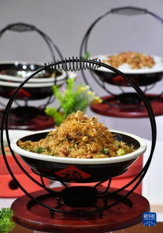 當(dāng)日,福建泉州石獅市舉辦“閩菜地標(biāo)美食城市”授牌暨“宋元海絲宴”推介儀式?!八卧=z宴”以南宋福建泉州石獅籍美食家林洪著作《山家清供》為還原藍(lán)本,兼收閩南名菜,集山珍、海味于一席,將菜品、宴席與宋元器皿、場(chǎng)景、樂(lè)曲、詩(shī)詞等融合,展現(xiàn)宋元時(shí)期世界海洋商貿(mào)中心獨(dú)特的美食文化。新華社記者 魏培全 攝