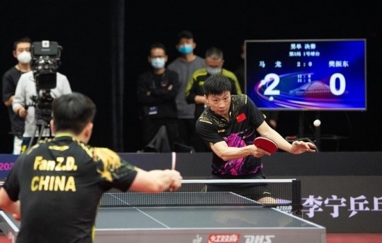 2月23日,中國(guó)乒乓球隊(duì)德班世乒賽選拔賽男單決賽中,馬龍(右)戰(zhàn)勝樊振東奪冠。新華社記者 陳鐘昊 攝