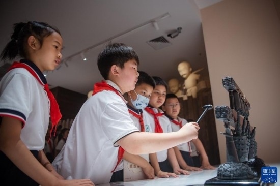 6月1日,小朋友們在館內(nèi)參觀體驗。