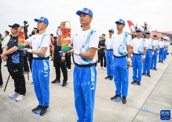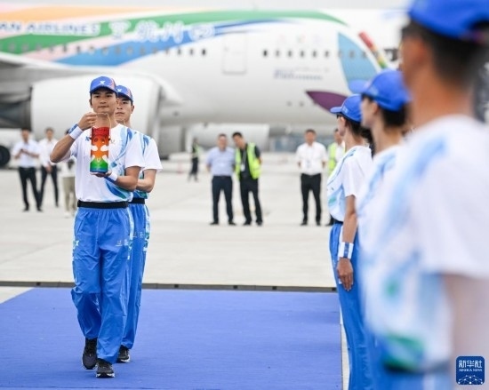 新華社成都6月8日電(記者陳地)8日上午,第31屆世界大學(xué)生夏季運動會火炬?zhèn)鬟f啟航儀式在成都天府國際機場舉行?;鹁婊鸱N抵達北京后,將于10日正式開啟成都大運會火炬?zhèn)鬟f。