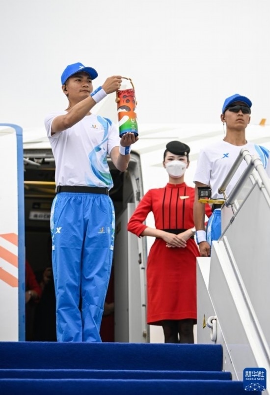作為大運會官方合作伙伴,四川航空承擔(dān)此次火炬?zhèn)鬟f火種航空運輸保障任務(wù)。當(dāng)日,“大運號”主題彩繪飛機執(zhí)行此次任務(wù),并由“中國民航英雄機長”劉傳健負責(zé)執(zhí)飛本次航班。在火種護衛(wèi)隊21名隊員的護送下,火種飛赴火炬?zhèn)鬟f首站城市——北京。從6月10日到7月28日,大運火炬將承載著大運精神,奏響“奮斗青春 放飛夢想”的成都大運會序章。
