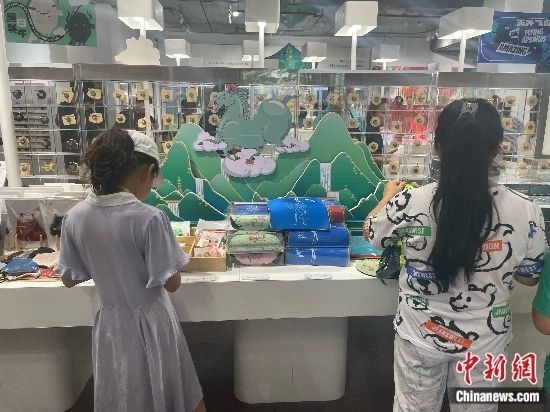 游客在甘肅省博物館文創(chuàng)商店選購(gòu)商品。中新網(wǎng)記者王詩(shī)堯 攝