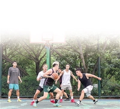 市民在成都杉板橋籃球場(chǎng)內(nèi)打球。本報(bào)記者 伊 霄攝