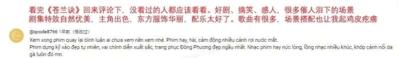 2023年前后,網(wǎng)劇《點(diǎn)燃我,溫暖你》和《長(zhǎng)月燼明》發(fā)行至越南,迅速占據(jù)Vieon等越南本地視頻平臺(tái)首位。越南觀眾在評(píng)論區(qū)內(nèi)毫不吝嗇自己的喜愛:“我已經(jīng)看了第二遍,每次都會(huì)哭?!薄八畜@人的演員陣容、服裝、風(fēng)景,簡(jiǎn)直太完美了!”