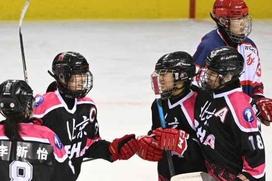 2月16日,第十四屆全國冬季運(yùn)動會冰球項目女子青年組小組循環(huán)賽A組比賽中。新華社記者 鄧華 攝
