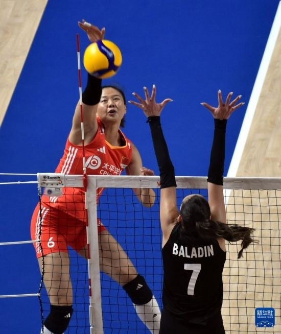 6月15日,中國(guó)隊(duì)球員王媛媛在比賽中扣球。新華社記者盧炳輝攝