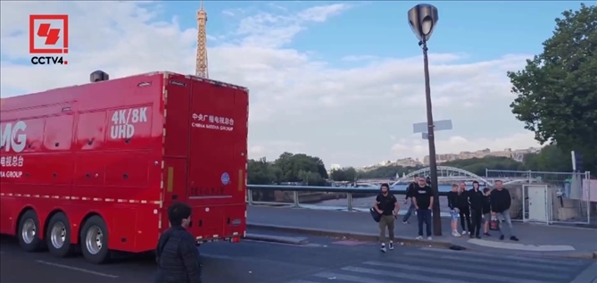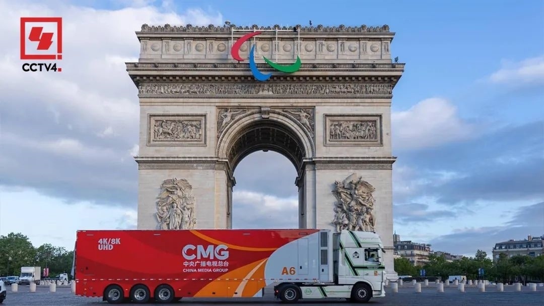 中央廣播電視總臺“中國紅”8K超高清轉(zhuǎn)播車,歷經(jīng)近2個(gè)月的旅程,在當(dāng)?shù)貢r(shí)間7月16日,終于抵達(dá)巴黎法蘭西體育場。行駛途中,“中國紅”一路經(jīng)過凱旋門、埃菲爾鐵塔等巴黎地標(biāo)性建筑,引發(fā)當(dāng)?shù)孛癖姎g呼贊嘆。