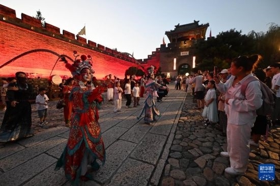 8月21日,游客在觀看“大明邊塞”之夜游黃崖關(guān)系列演出。