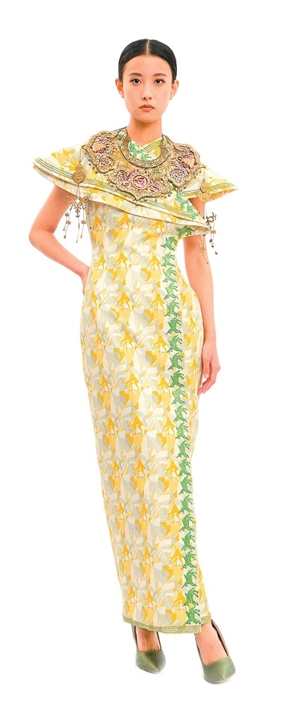 崔榮榮團(tuán)隊(duì)為“中法時尚之約:絲路遺產(chǎn)創(chuàng)新設(shè)計(jì)時裝發(fā)布會”設(shè)計(jì)的“絲綢之路”禮服。