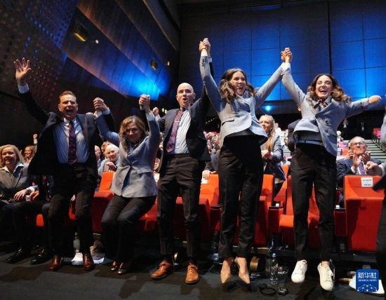 這是2024年7月24日,在巴黎進行的國際奧委會第142次全會上,美國鹽湖城代表團成員慶祝獲得2034年冬奧會舉辦權。新華社記者 孫非 攝