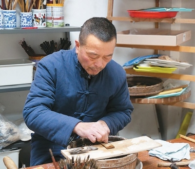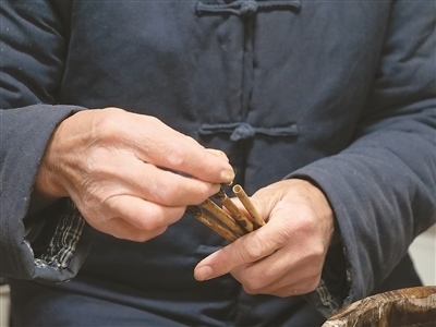 “無論是制作哪一類品種的宣筆,要能實(shí)現(xiàn)‘尖、齊、圓、健’均屬不易,需經(jīng)歷選料、水盆、制桿、裝套等多道工序、100多個(gè)環(huán)節(jié)?!币灾茥U為例,佘征軍介紹,工人需要先將筆桿磨平,再用工具在筆桿上挖出裝筆頭的洞,這套工藝沒有特定的參數(shù)可參考,全憑工人的手上感覺?!皩W(xué)徒入行,一般3到5年才能完整學(xué)會宣筆制造流程;要想做出一支優(yōu)秀的宣筆,至少10到12年的學(xué)習(xí)實(shí)踐;而要想學(xué)‘精’,需要一輩子的時(shí)間。”佘征軍說。