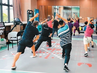2024年9月3日,深圳南山慢病院,運(yùn)動康復(fù)師王千武(面對鏡頭者)正在指導(dǎo)慢病患者科學(xué)鍛煉。