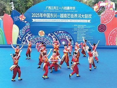 本報(bào)電(記者龐革平)4月13日,2025年中國(guó)東興—越南芒街界河大聯(lián)歡活動(dòng)在中國(guó)廣西東興國(guó)門(mén)景區(qū)國(guó)旗街舉辦。此次活動(dòng)旨在慶祝中越建交75周年暨“中越人文交流年”,進(jìn)一步弘揚(yáng)中越傳統(tǒng)友誼,深化雙方人文交流與合作。北侖河畔,春意盎然,來(lái)自中越兩國(guó)的藝術(shù)家與各界民眾歡聚一堂,以藝術(shù)為媒,共同譜寫(xiě)中越友誼的新篇章。