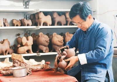 前些年,胡新明大膽嘗試,在泥里加入紙漿、棉花、面糊、糯米汁等,反復(fù)試驗(yàn),研制出“摔不爛”的泥塑;創(chuàng)新泥塑造型,讓各類(lèi)產(chǎn)品推陳出新。