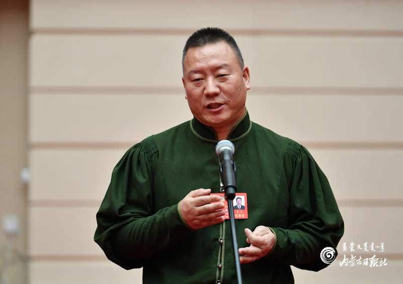 最后一位發(fā)言的是自治區(qū)政協(xié)委員、鄂爾多斯市烏審旗馬頭琴樂團(tuán)指導(dǎo)員金海,他結(jié)合本職工作對蒙古族民族音樂與世界音樂如何更好融合談了看法:“民族的就是世界的,我們一定要更好地保留和挖掘民族特色,在演藝形式上不斷向世界主流音樂靠近?!闭Z畢,他現(xiàn)場拉起馬頭琴,一曲《草原上升起不落的太陽》在通道上空回響。