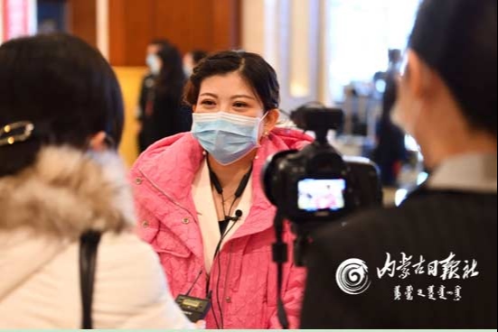 人大代表接受內(nèi)蒙古日?qǐng)?bào)社記者采訪。