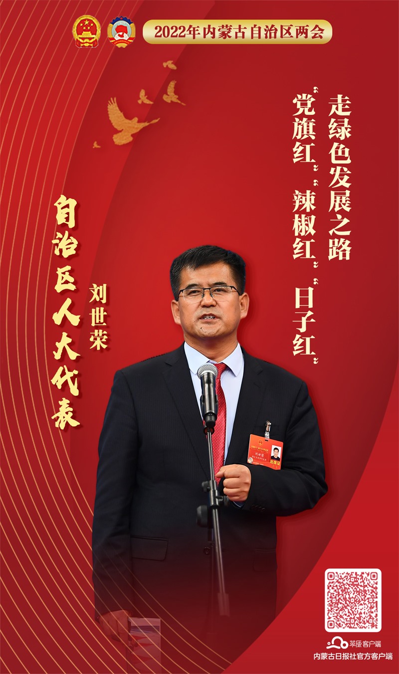 從昔日的沙窩窩到成為如今遠近聞名的美麗鄉(xiāng)村,自治區(qū)人大代表、鄂爾多斯市達拉特旗展旦召蘇木道勞村黨支部書記、村委會主任劉世榮和大家分享了23年來,道勞村是怎樣推動農(nóng)畜產(chǎn)品生產(chǎn)基地優(yōu)質(zhì)高效轉型,走出一條符合道勞實際的綠色發(fā)展之路的。他用“三個紅、一個綠”描述了今天的道勞村,即“黨旗紅”“辣椒紅”“日子紅”,走綠色發(fā)展之路。