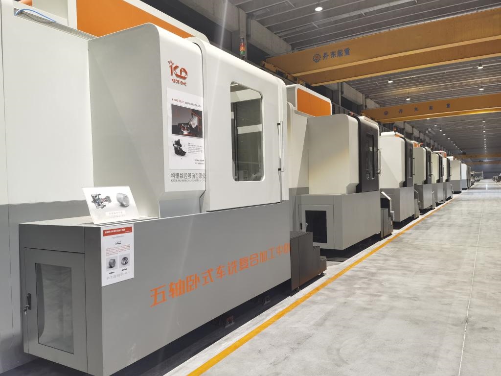 在大連光洋科技集團(tuán)25萬(wàn)平方米恒溫恒濕地藏式生產(chǎn)車間,一臺(tái)臺(tái)“大塊頭”高端機(jī)床整齊排列,其中,一臺(tái)5米多高的高端五軸臥式車銑復(fù)合加工中心,十分引人注目。