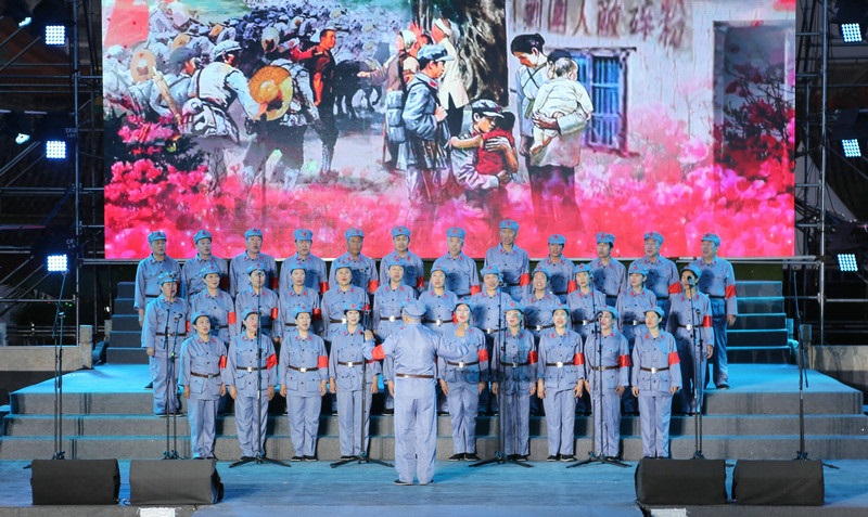 “唱支山歌給黨聽(tīng),我把黨來(lái)比母親,母親只生了我的身,黨的光輝照我心......”雨后的舞臺(tái)煥然一新,一首首耳熟能詳?shù)母锩枨?,把人們的思緒瞬間拉回歷史的長(zhǎng)河,手中揮舞著一面面鮮艷的五星紅旗,點(diǎn)亮了整個(gè)夜晚。